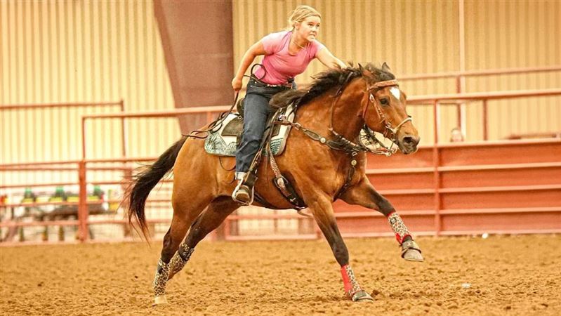 Gus is a 2011 American quarter horse bay gelding standing at 15hh. He is a solid 2D jackpot/ 3D-4D bigger races horse. Gus is a very consistent horse and has only hit two barrel in his racing career of 4 yrs. Drop your hand and let him work! (Never had injection) You can calf rope, team rope, run poles, straight, goats, and trail ride on road or in pasture on him. This horse has been my heart horse ever since the day he came to us. I hate to sell him, but, he is a true, same run type horse. I need a rodeo performance style. (He is rodeo safe)